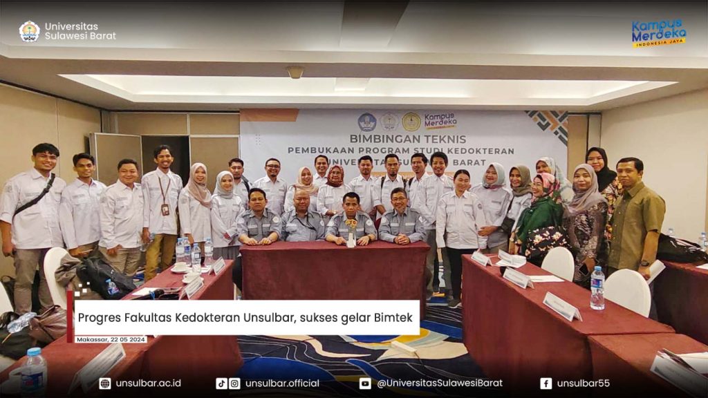 Makassar – Universitas Sulawesi Barat (Unsulbar) semakin dekat dengan cita-citanya untuk mendirikan Fakultas Kedokteran, mengadakan Bimbingan Teknis (Bimtek) yang bertujuan untuk finalisasi dokumen standar pendirian Fakultas Kedokteran. Acara ini berlangsung di Hotel Aston Makassar. (22-24/05/2024).
